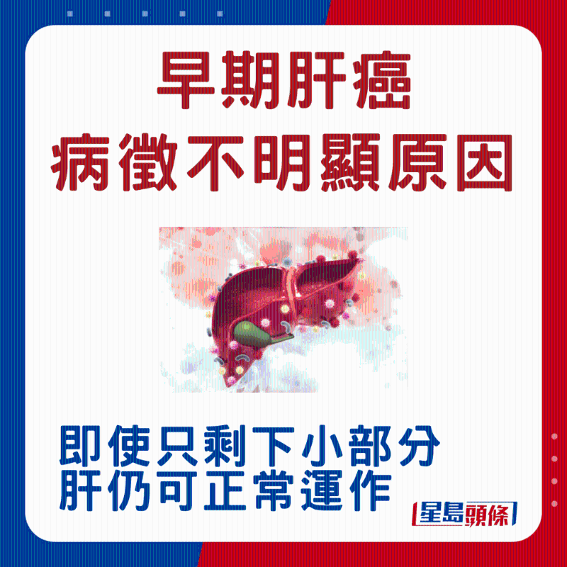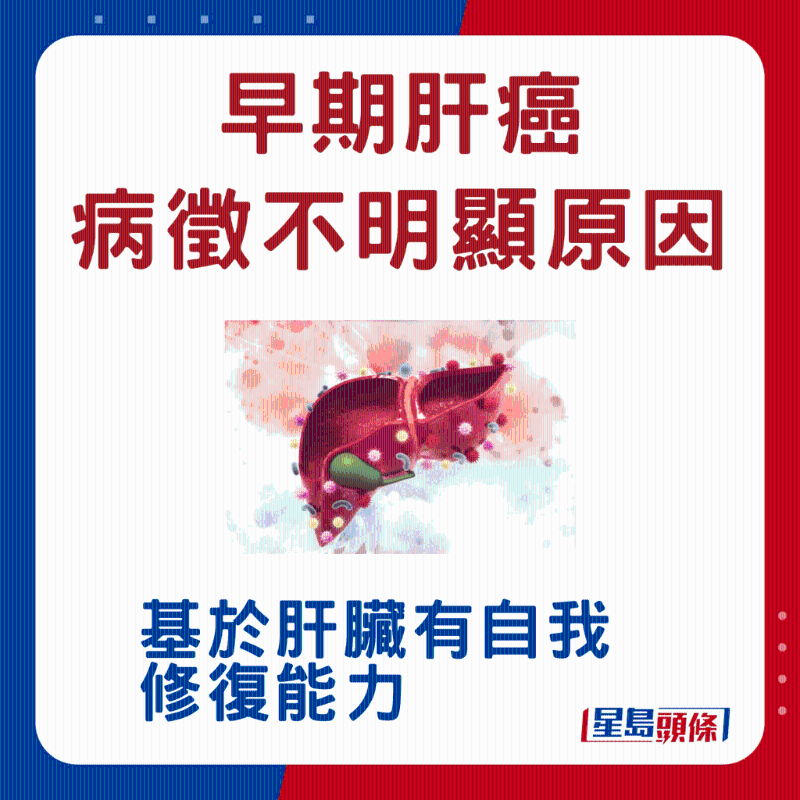 潘冬平教授指出,因肝臟有自我修復(fù)能力,即使剩下小部分仍可正常運作,故早期肝癌病征不明顯。