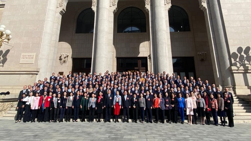 ▲全國政協(xié)委員在政協(xié)禮堂外合照。