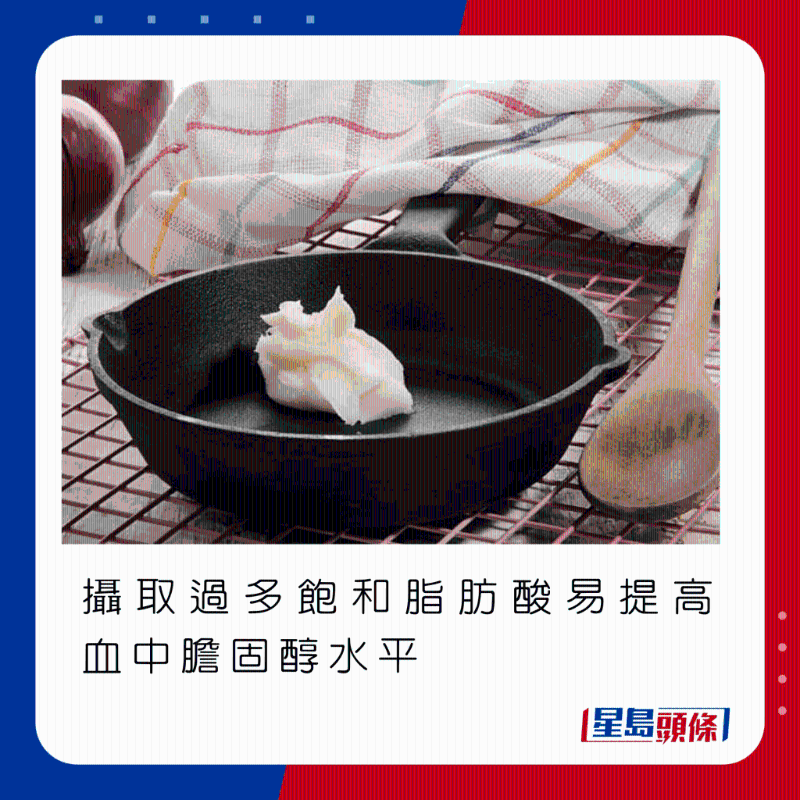 - 攝取過(guò)多飽和脂肪酸卻易提高血中膽固醇水平,容易造成血管硬化,故不建議以動(dòng)物油作為主要食用油。