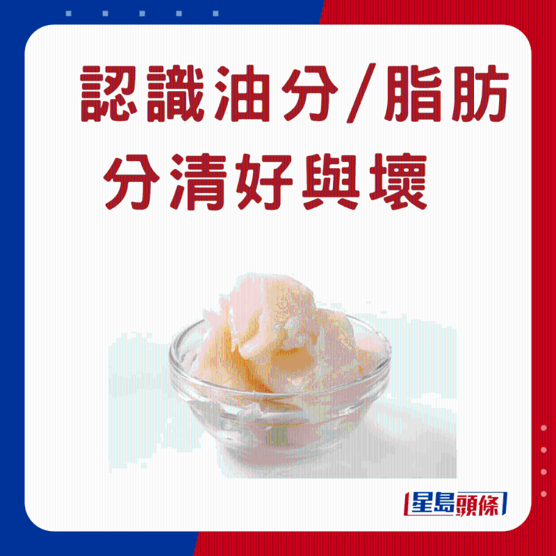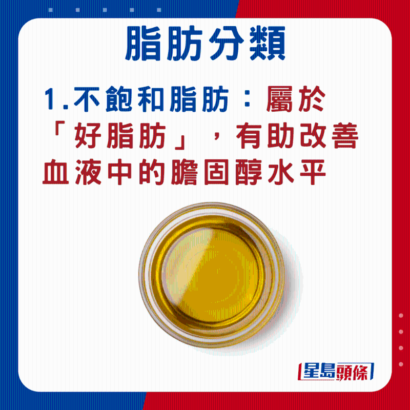 油(包括了植物油)即是脂肪,主要分為三大類(lèi):不飽和脂肪(包括單元及多元不飽和脂肪)、飽和脂肪,以及反式脂肪。