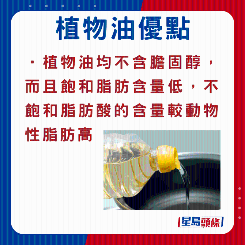植物油不含膽固醇,加上又含有豐富的不飽和脂肪,故被視為健康的食用油。