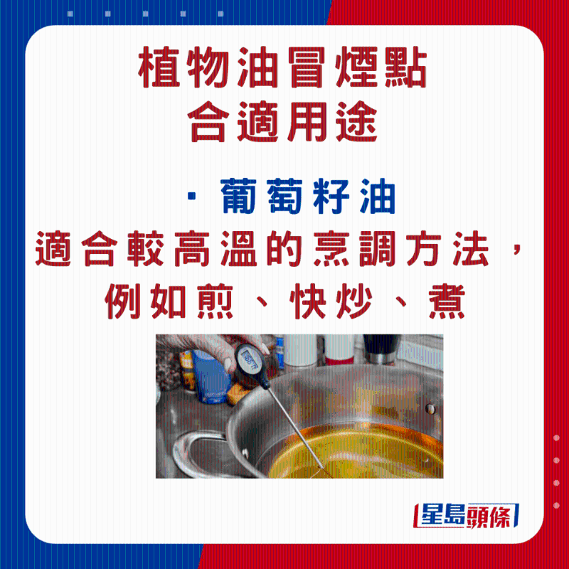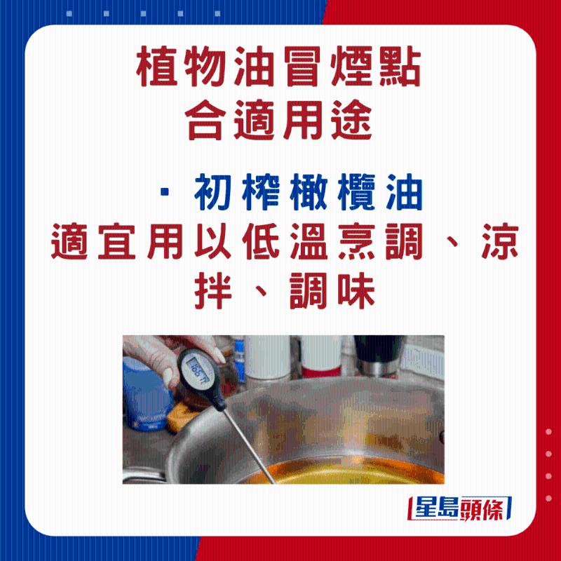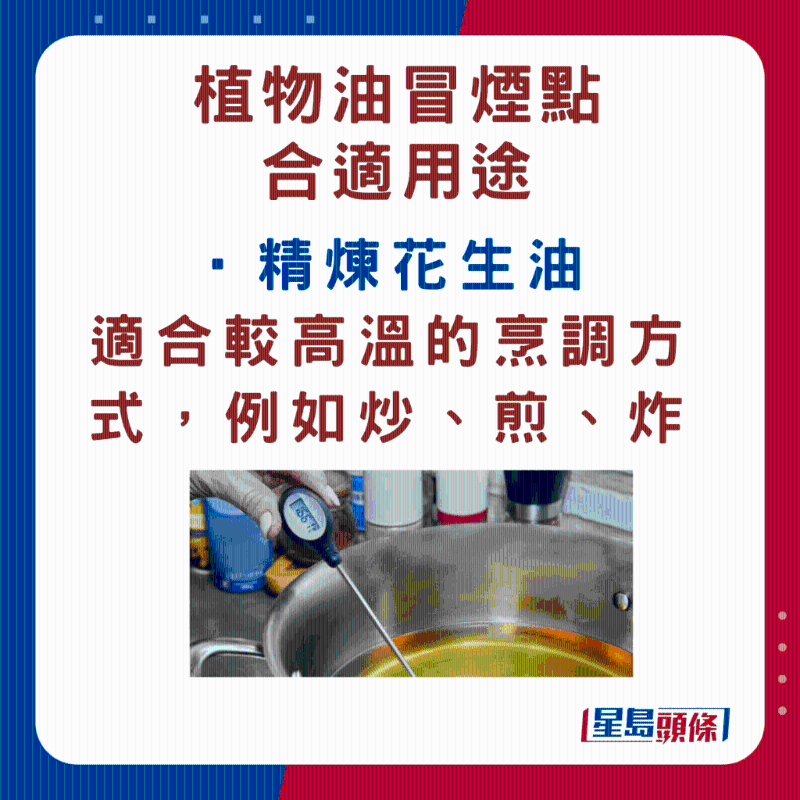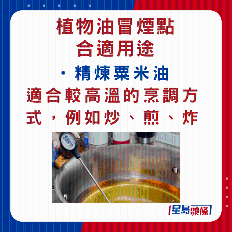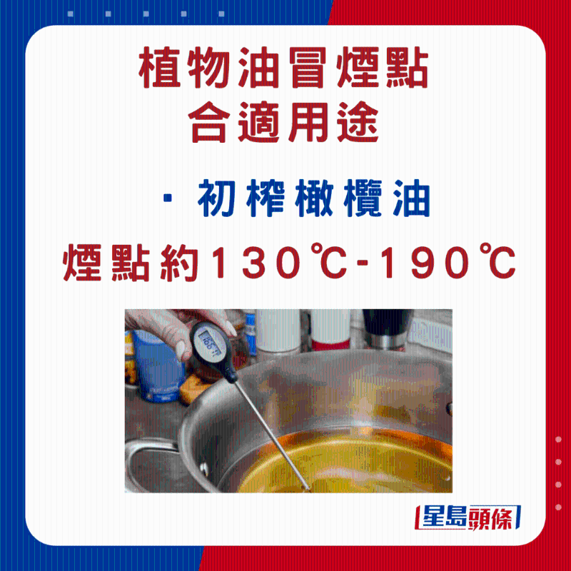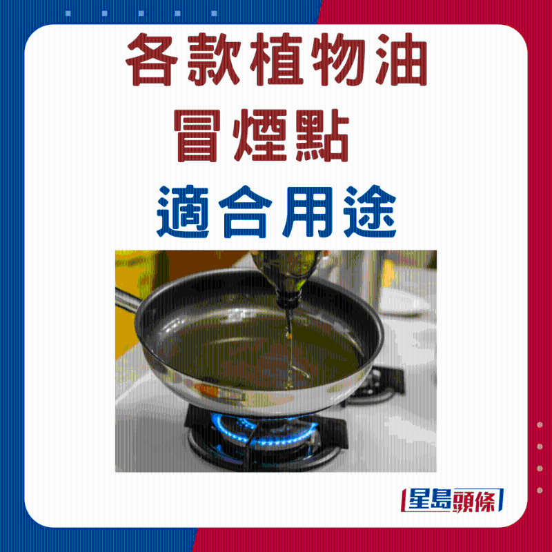 因此,大家必須認(rèn)識(shí)清楚植物油的不同種類(lèi)和其“煙點(diǎn)”溫度,以及其適合用途,當(dāng)中包括: