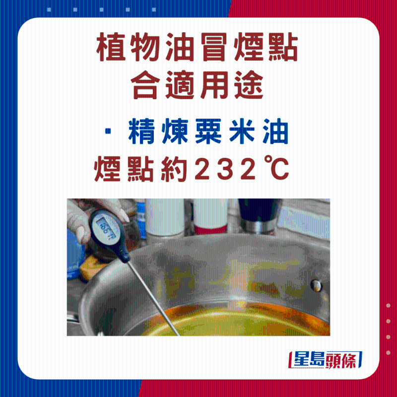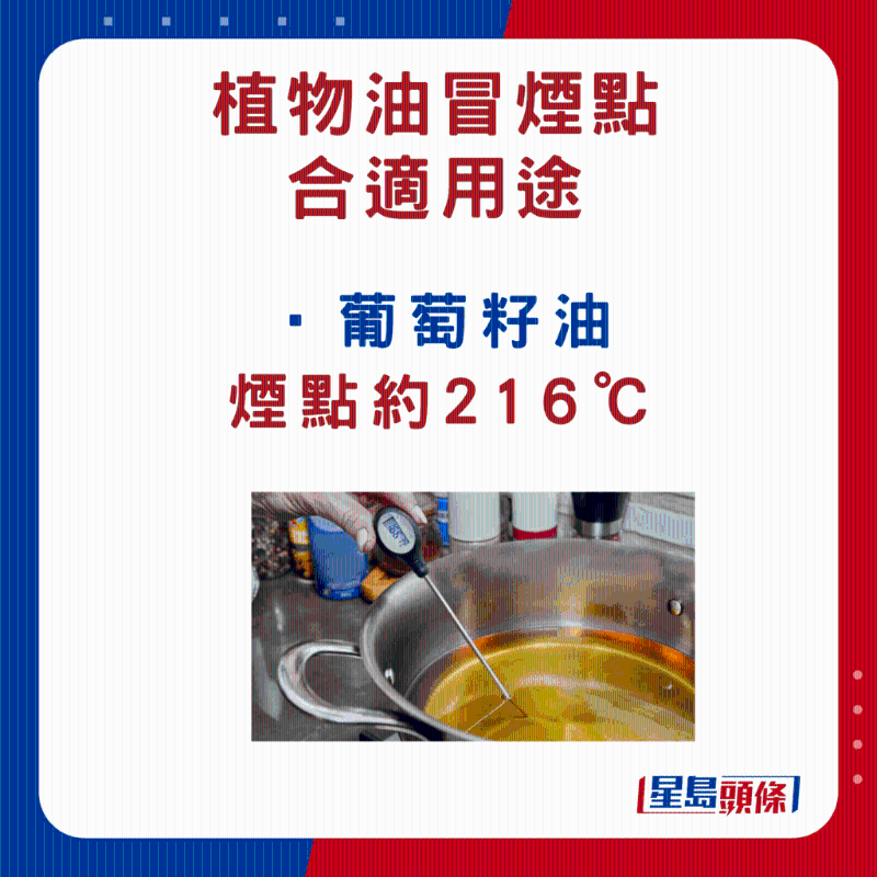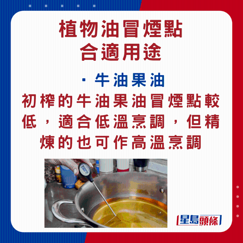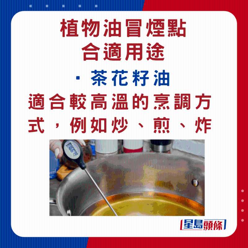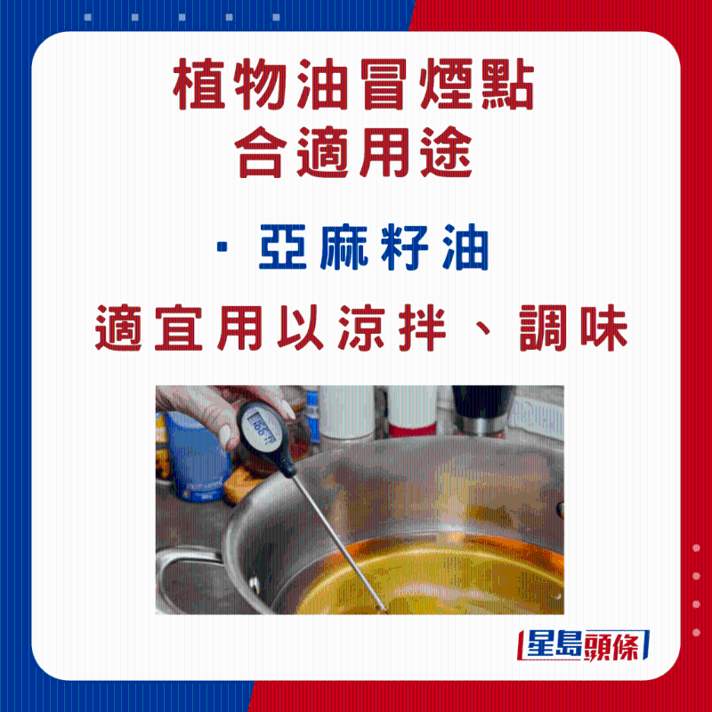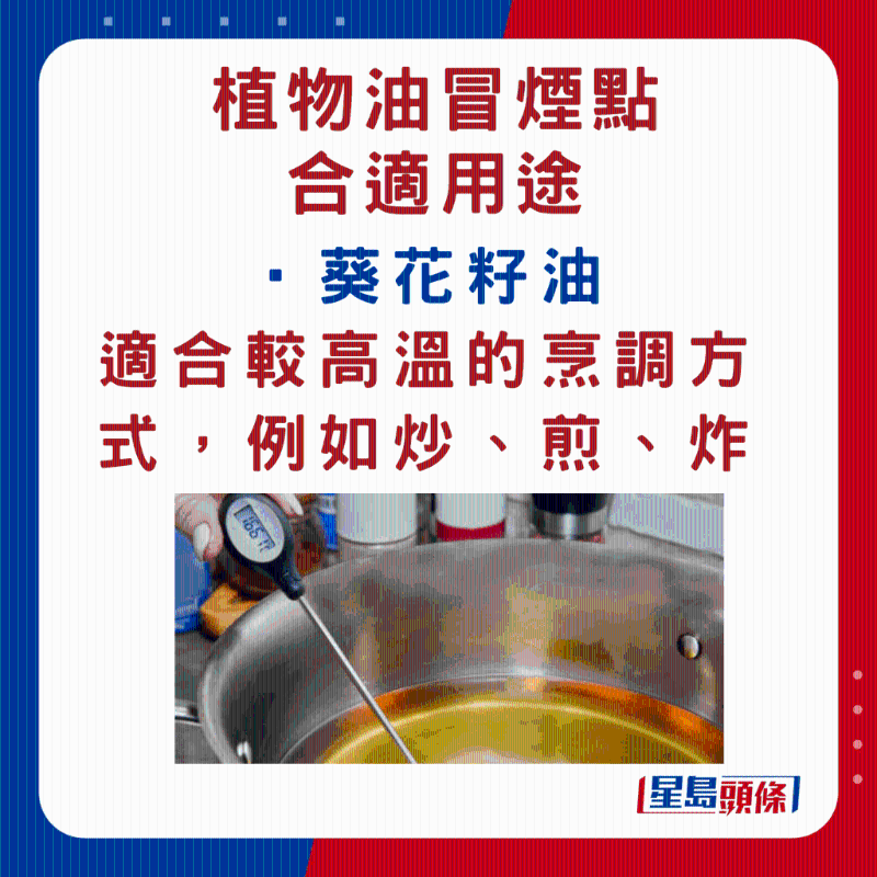 因此,大家必須認(rèn)識(shí)清楚植物油的不同種類(lèi)和其“煙點(diǎn)”溫度,以及其適合用途,當(dāng)中包括: