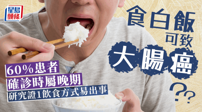 吃白飯也會(huì)引發(fā)大腸癌?大腸癌為香港第2大致命癌癥,近年更有年輕化趨勢(shì)。 有醫(yī)生引述研究指,近年確診大腸癌的年輕患者增加,有60%患者發(fā)現(xiàn)時(shí)已屬晚期,情況嚴(yán)重。 大腸癌與飲食習(xí)慣有關(guān),有1種飲食方式易增風(fēng)險(xiǎn),其中精制谷物,例如白飯,更是引發(fā)大腸癌的高危因素之一。