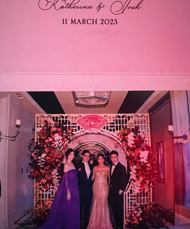 已故賭王何鴻燊四房兒子何猷君2019年與超模奚夢瑤結(jié)婚,同年10月誕下大兒子何廣燊(Ronaldo),前年11月再添女Romee。 二人結(jié)婚3年多以來恩愛如昔,周日(12日)更一同盛裝出席護(hù)膚品牌Estée Lauder創(chuàng)辦人曾孫Josh Lauder與太太Katherine Chan的香港婚宴,同場還有何超欣、林建岳女兒林恬兒、“股神”巴菲特孫媳婦Lili Buffett等。 相隔一日,奚夢瑤近日于社交網(wǎng)貼出宴會合照,豈料即傳出懷孕消息!