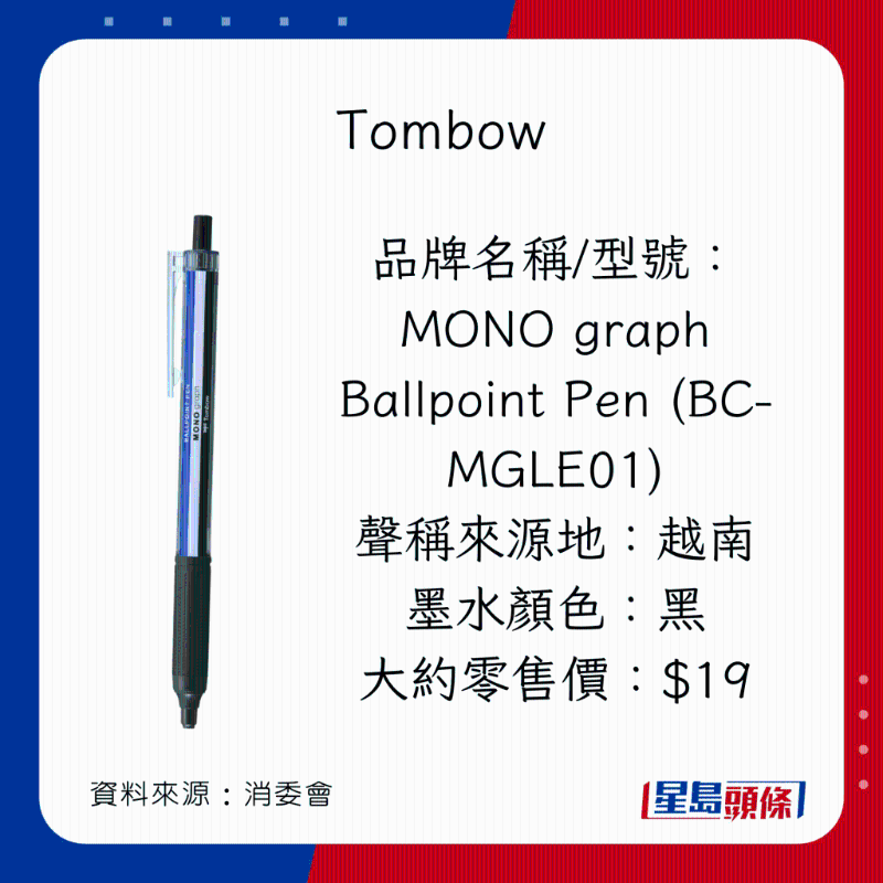消委會(huì)又綜合40款筆的價(jià)錢、書(shū)寫性能、安全程度、耐力性能試驗(yàn)進(jìn)行比較及評(píng)分,當(dāng)中有11款筆同獲4.5分或以上的高分,且不含致敏化學(xué)物: