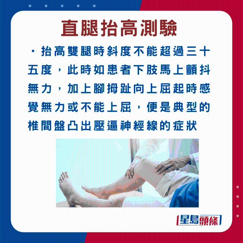 “直腿抬高測驗”方法如下: