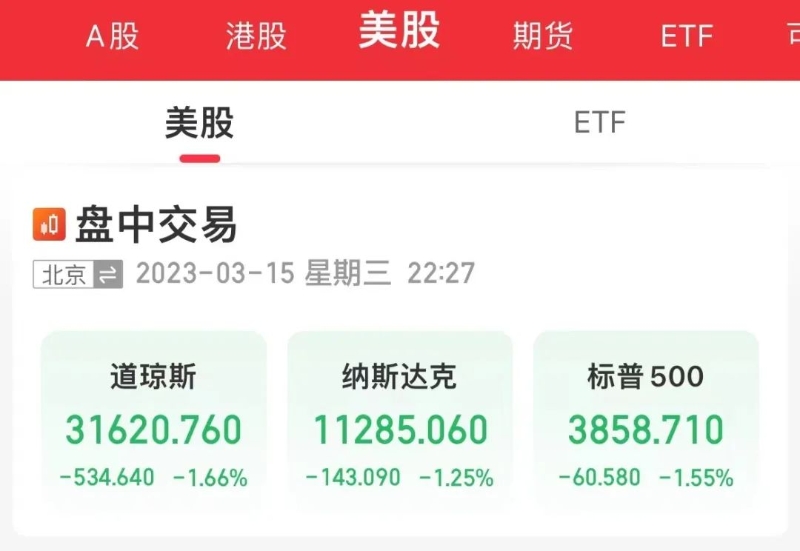 3月15日晚,美股三大指數(shù)均大幅低開,隨后,納指、標(biāo)普500指數(shù)跌幅擴(kuò)大。截至發(fā)稿前,道指跌1.66%,納指跌1.25%,標(biāo)普500指數(shù)跌1.55%。