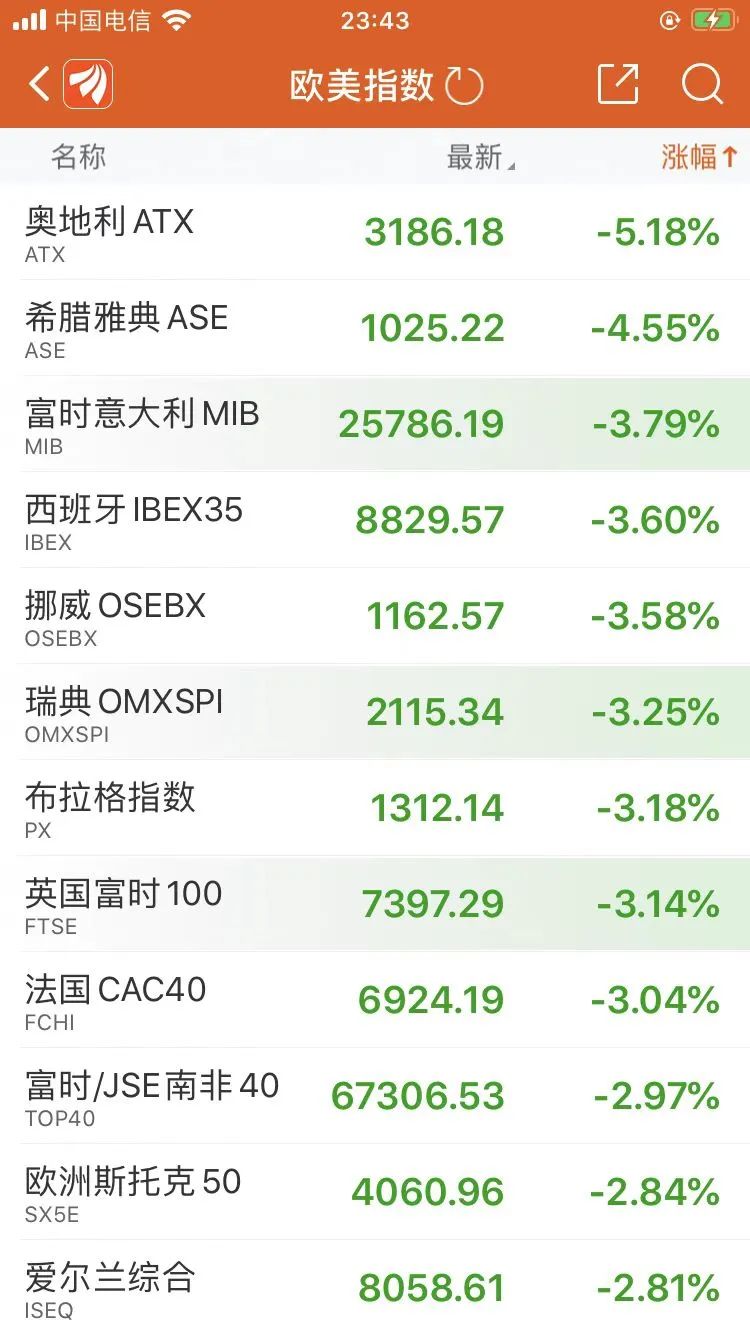 與此同時(shí),歐洲股市也集體下挫。