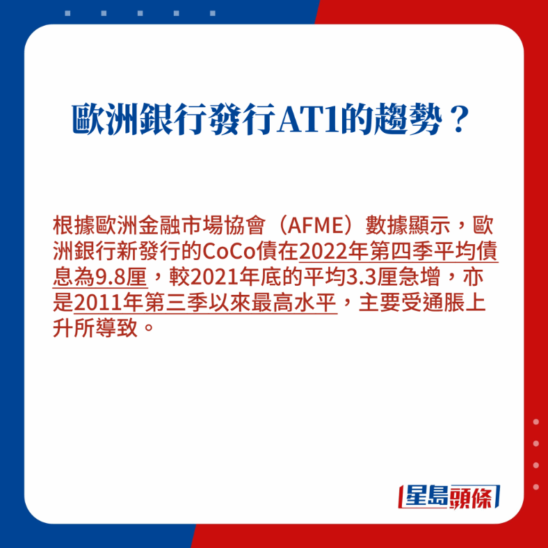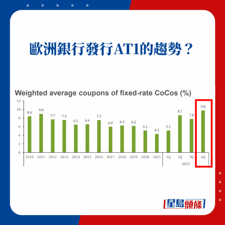 他認(rèn)為,此先例一開(kāi),將會(huì)對(duì)金融市場(chǎng)認(rèn)知帶來(lái)洗牌式影響,有機(jī)會(huì)引發(fā)市場(chǎng)對(duì)全球銀行的CoCo債重新估值,以適應(yīng)新“玩法”,對(duì)整個(gè)歐洲AT1債券市場(chǎng)造成沖擊,包括有份發(fā)行AT1的匯控。他相信,如若銀行要以此工具進(jìn)行集資,成本將會(huì)更高,甚至因?yàn)樾枨蟛蛔愣鵁o(wú)法發(fā)行,進(jìn)一步拉緊銀行流動(dòng)性。