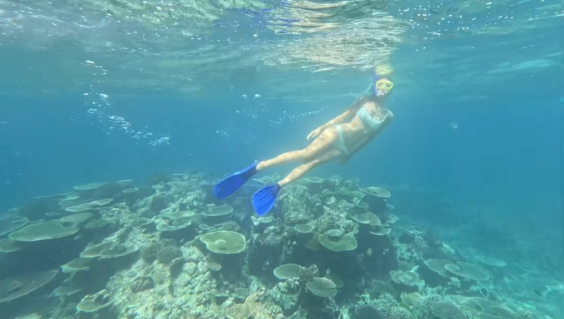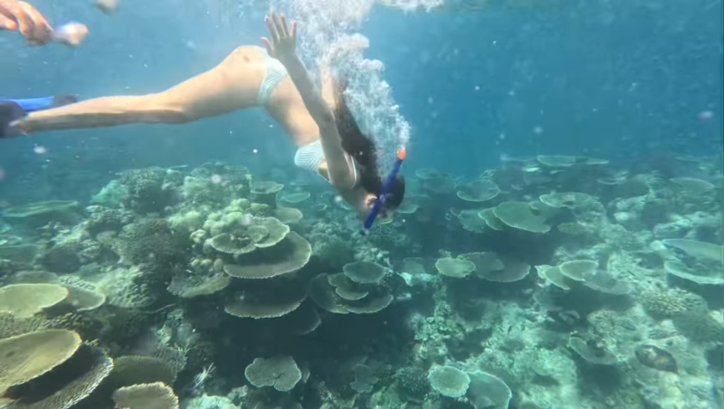 ▲任晴佳身穿三點(diǎn)式潛水,盡曬42吋長(zhǎng)腿及纖腰。