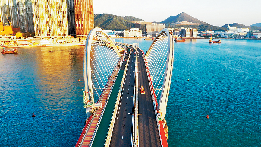 ▲將軍澳跨灣連接路,采用了經(jīng)理大的國家鋼結(jié)構(gòu)工程技術(shù)研究中心香港分中心改良的S690高強鋼材。資料圖片