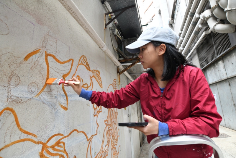 ▲本地藝術(shù)家Vivian Ho有分參與今年的HKWalls藝術(shù)節(jié),她由讀書時代已開始街頭快閃創(chuàng)作。
