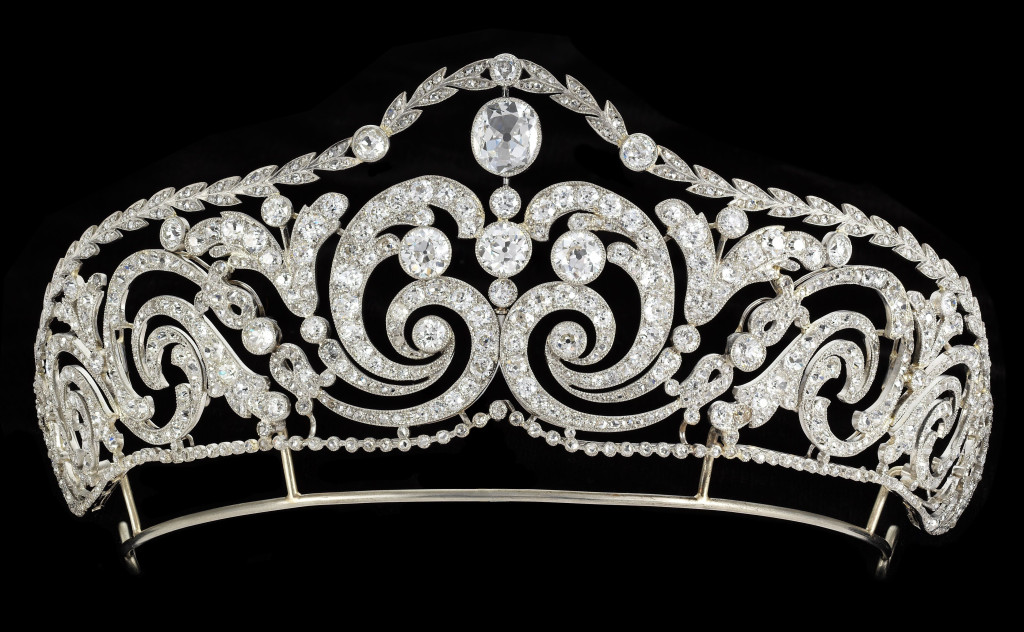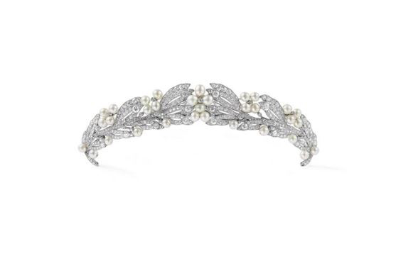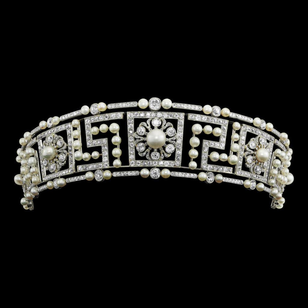 為瑪麗.波拿巴公主(1882–1962 年)于1907 年特別訂制冠冕,以鉑金、鉆石及天然珍珠制作。