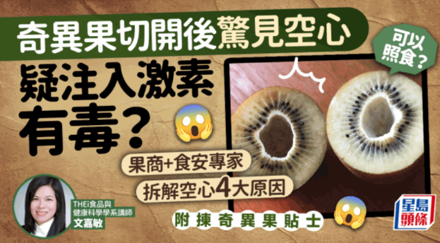 空心奇異果有毒?近日香港有網(wǎng)民發(fā)文指,購(gòu)入一盒來自韓國(guó)的奇異果,切開后驚見中間位置是空心,但進(jìn)食后發(fā)現(xiàn)水果并非過熟。帖文一出引發(fā)網(wǎng)民熱議,有人懷疑是激素或基因改造所致,恐含有害物質(zhì)??招脑蛘娴呐c激素毒素有關(guān)?有食物安全專家接受《星島頭條》訪問,拆解出現(xiàn)空心奇異果的4大原因、分析是否可安全食用。另亦有果商受訪解釋原因,教選購(gòu)靚奇異果的貼士。