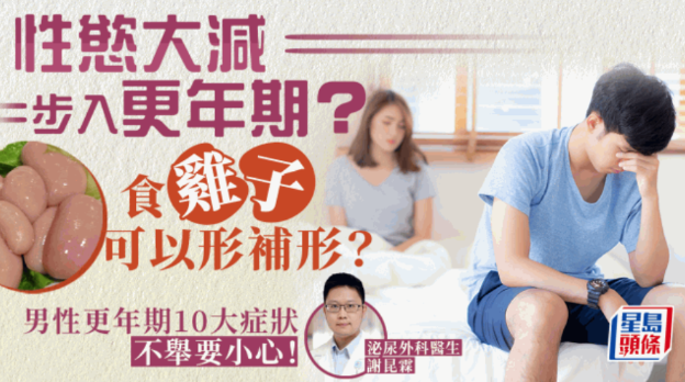 性欲降低等于步入男性更年期?吃雞子可以形補(bǔ)形?有泌尿外科醫(yī)生指,如果出現(xiàn)體力下降、性欲大減、容易疲累,甚至不舉等情況,就可能患上睪固酮低下癥,即步入男性更年期。要補(bǔ)充睪固酮,食雞子真的能以形補(bǔ)形?醫(yī)生指有6招可以提升睪固酮。
