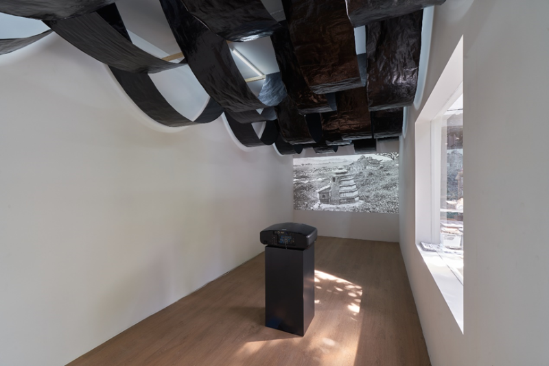 ▲《以太的邏輯》是韓夢(mèng)云從印度回來(lái)后,應(yīng)用雕版印染創(chuàng)作的一個(gè)多媒體裝置。