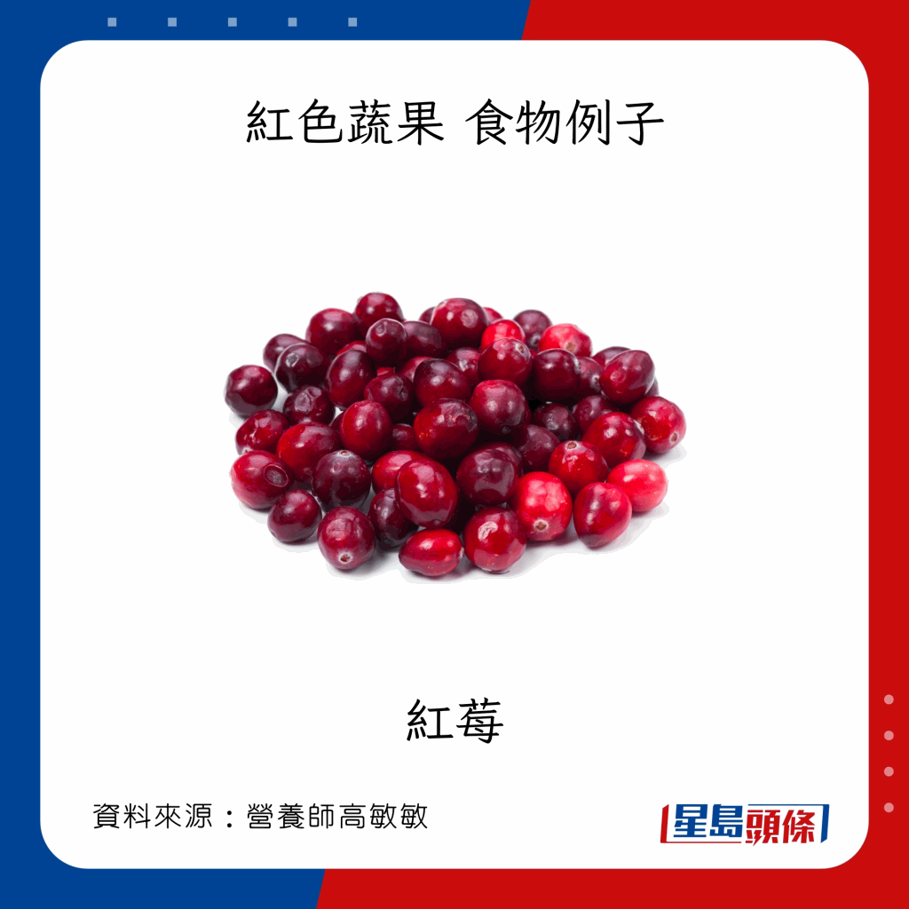 食物例子:紅莓、紅椒、番茄、西瓜