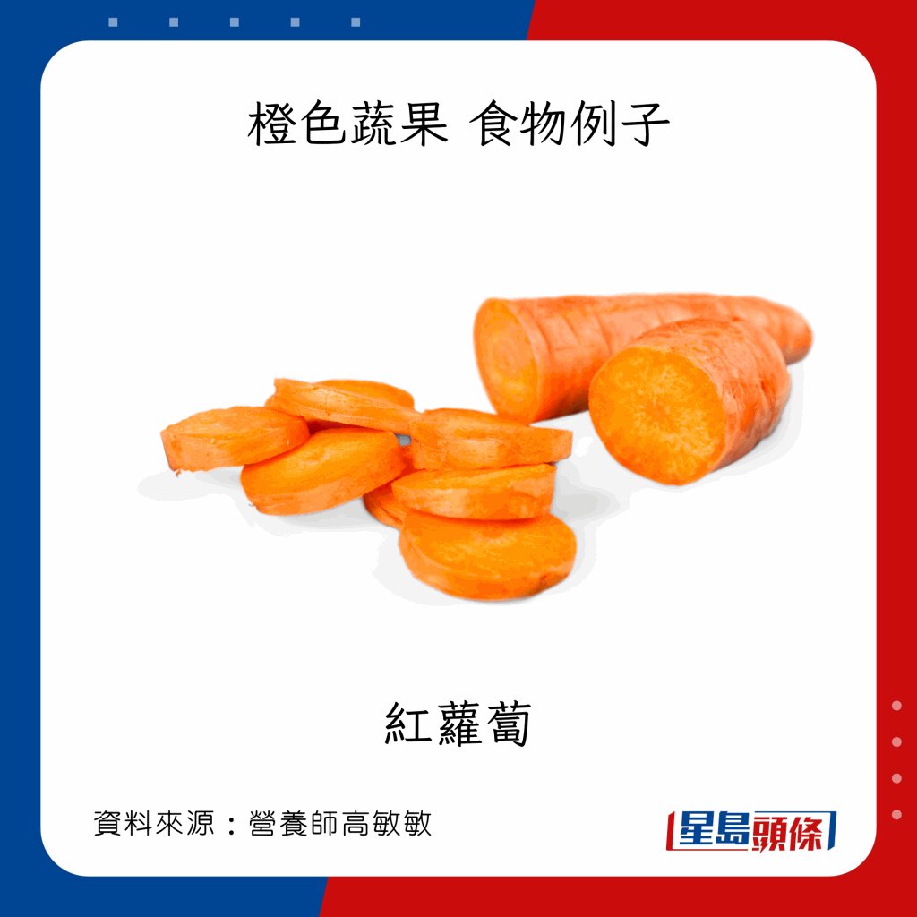 食物例子:紅蘿卜、南瓜、木瓜、柿
