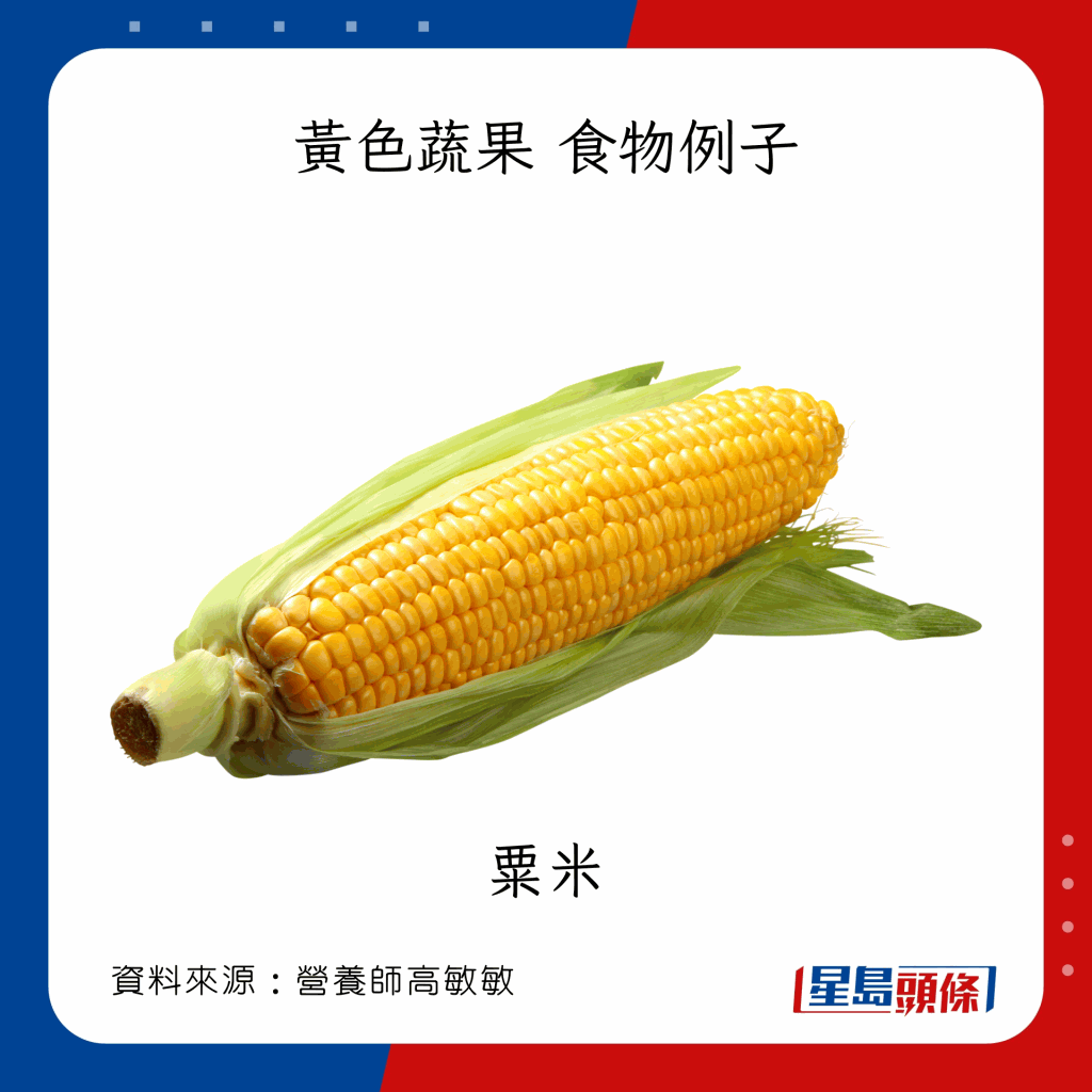 食物例子:黃椒、粟米、蕃薯、菠蘿