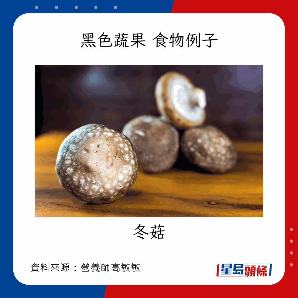 食物例子:黑木耳、冬菇、海藻、黑芝麻