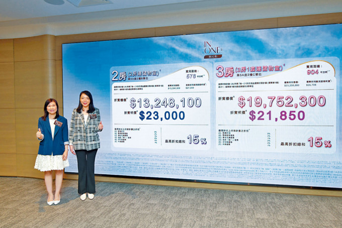 ▲華懋封海倫(右)強調(diào),瑜一IC期首張價單屬原價加推。旁為陳慕蘭。