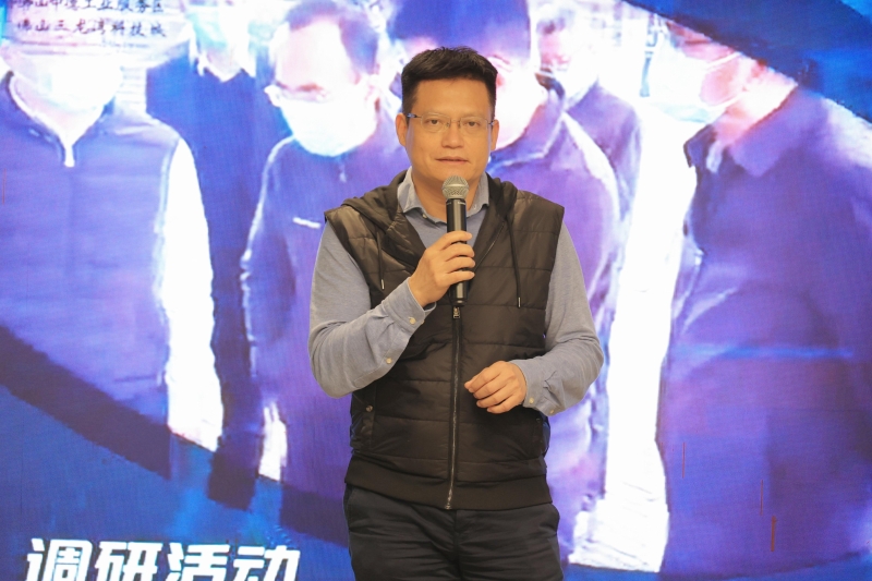 ▲佛山中德工業(yè)服務(wù)區(qū)(佛山三龍灣科技城)黨工委副書記、管委會(huì)主任潘東生介紹三龍灣科技城