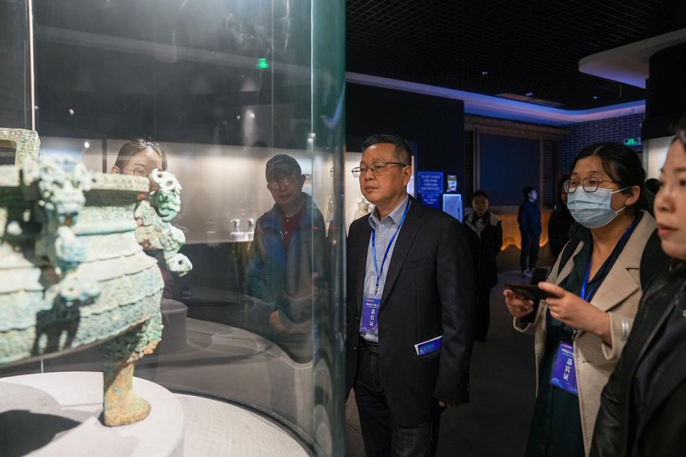 在大觀博物館,名媒大咖們?cè)趯?dǎo)賞員的帶領(lǐng)下,共同“聆聽”文物背后的故事。據(jù)介紹,該博物館擁有藏品12000余件,其中國家一級(jí)文物757件,是目前國內(nèi)一級(jí)文物最多的非國有博物館。博物館以青銅鏡與紙幣藏品為特色,同時(shí)囊括青銅器、陶器、瓷器、碑刻等多個(gè)門類的文物,目前已打造成為一個(gè)體系龐大、專業(yè)深刻的文博機(jī)構(gòu)。