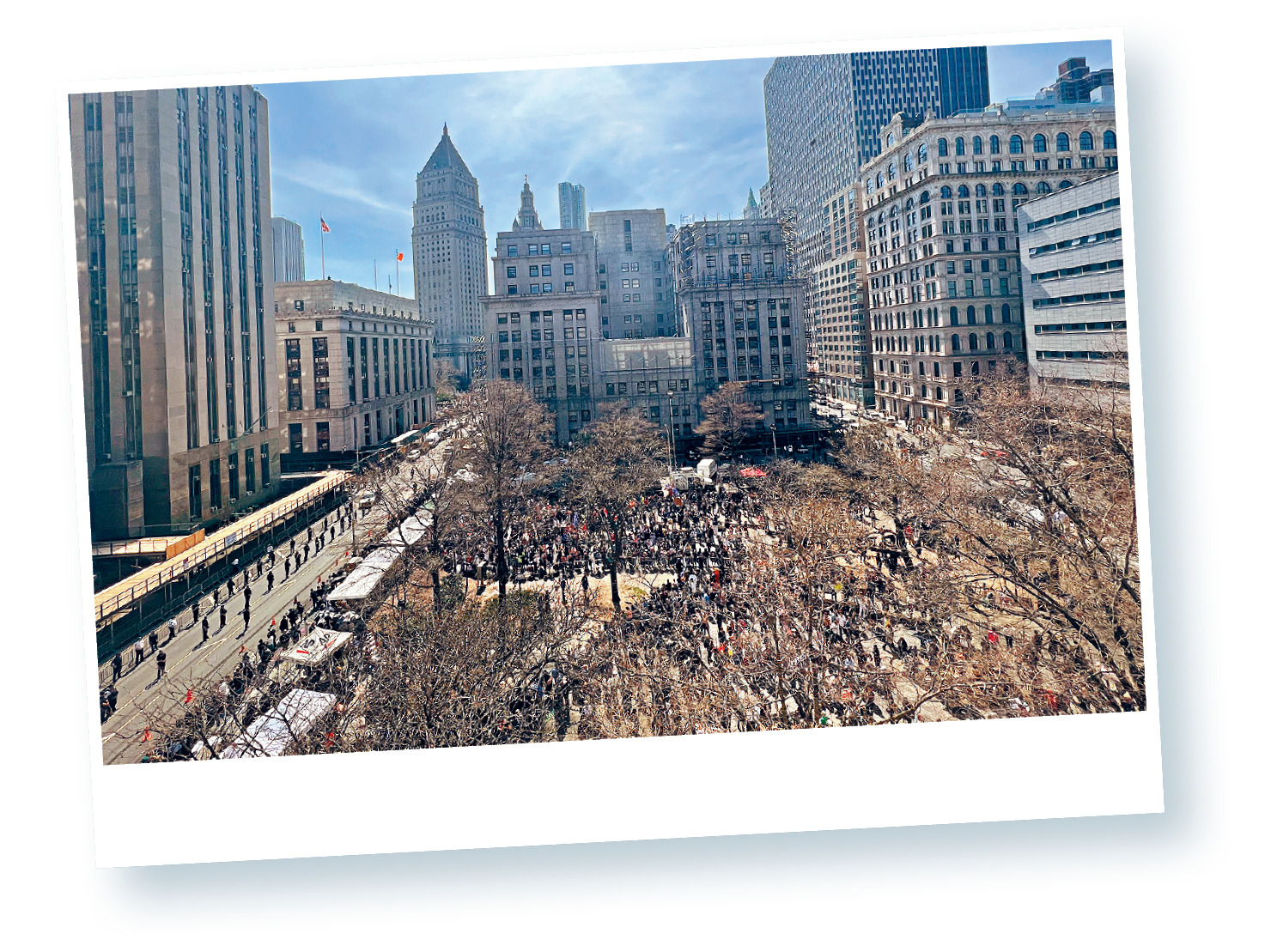 ▲圖為特朗普出庭時(shí),曼哈頓刑事法院門外的情況,左邊可以看到大量警察在主干道前守衛(wèi),路旁看到大批媒體采訪。 路透社