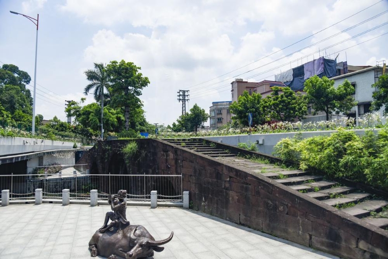 時光荏苒,如今再回望鹽步直街的繁華時光,生活服務(wù)業(yè)興盛的同時,省佛通衢作為與廣州連通的重要通道,其功能性逐漸減弱。改革開放后,隨著大瀝鎮(zhèn)廣佛路、廣佛新干線等新通道的啟用,省佛通衢不再是廣佛車水馬龍的主要載體。一個例證便是,原省佛通衢古道16座橋梁和8個渡口中,大部分均已拆毀,僅有五眼橋(通福橋)、三眼橋、一眼橋依然得到較完整的留存,或作為文物,或用于村民日常出行。此外,三眼橋與廣三鐵路之間有一段30米的石板路,還能看出當時“疊石于下以固其基,增石于上以廣其途”的修路方法。