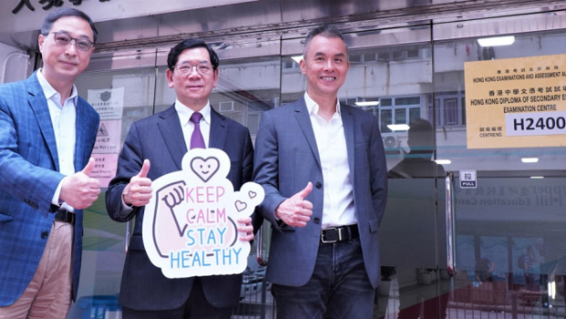 ▲考評(píng)局主席容永祺(中)、秘書(shū)長(zhǎng)魏向東(左)與公開(kāi)考試總監(jiān)麥勁生(右),早前特別到“指定試場(chǎng)”視察??荚u(píng)局