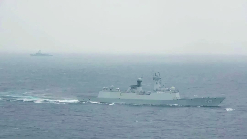 ▲圖為解放軍船只8日在臺灣周邊參與聯(lián)合利劍演習(xí)。 路透社、解放軍東部戰(zhàn)區(qū)