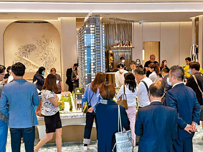 ▲恒基牽頭發(fā)展的啟德天瀧,昨為黃金周假期首天,示位參觀人流不斷。