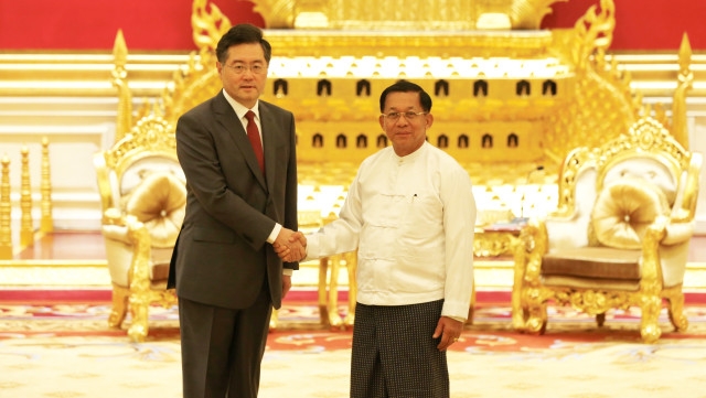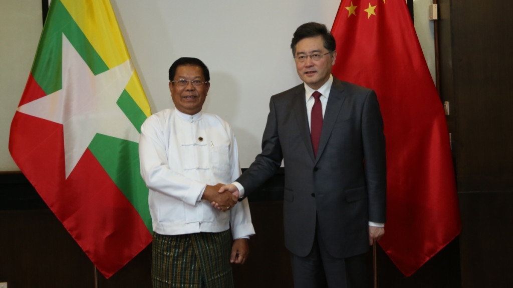國(guó)務(wù)委員兼外長(zhǎng)秦剛訪問(wèn)緬甸內(nèi)比都,與緬甸領(lǐng)導(dǎo)人敏昂萊會(huì)面。