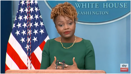 ▲白宮發(fā)言人卡琳•讓-皮埃爾3日就“克宮遭襲”一事回答記者提問 圖自天空新聞網視頻截圖