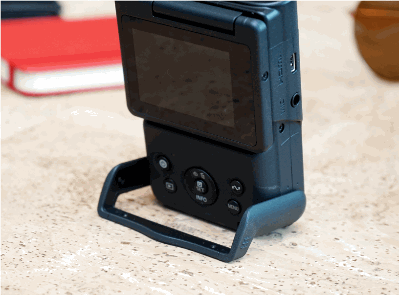 外形有別傳統(tǒng)相機的PowerShot V10,機身體積不過流動充電器大小,211g重量更加只比iPhone 14 Pro重5g,輕巧程度可以放進男士褲袋,又或女士們的小手袋,整天帶著不成問題。正因機身輕便,PowerShot V10可讓拍友單手握機輕松操作,甚至手腕一轉即由橫度變作直度,再按下機面的快門/錄影掣,隨之影相拍片。想要自拍,只要將2吋LCD芒向上翻出,又可以輕松取景。若然要把相機固定,釋放雙手拍Vlog或開Live,PowerShot V10考慮周詳,機身內置一體式腳架,拉出來可當?shù)鬃钕鄼C座枱放置之余,還可以調校前后30度的傾斜角度。