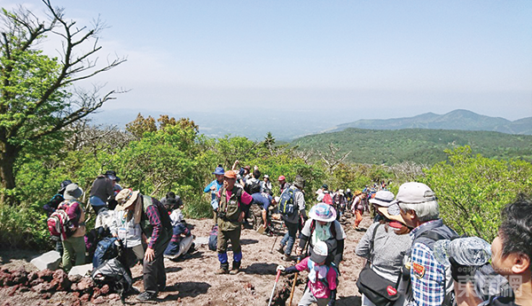 ▲高千穗峰上這支天之逆鉾十分神圣,有很多圍欄和保護(hù)物,任何人都不能走近。