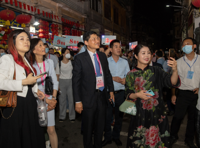 ▲5月16日晚,參加2023華僑華人粵港澳大灣區(qū)大會(huì)的海外華僑華人代表夜游江門,品味僑都美麗夜景。 南方+記者 肖雄 王俊濤 攝