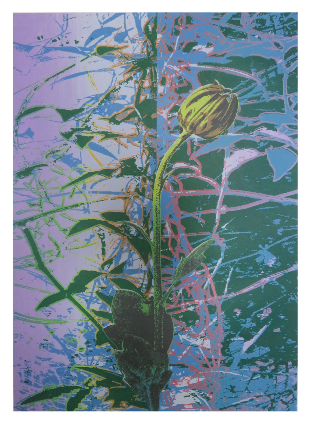 ▲版畫(huà)|鍾大富的孔版畫(huà)作品《花的祝禱》。