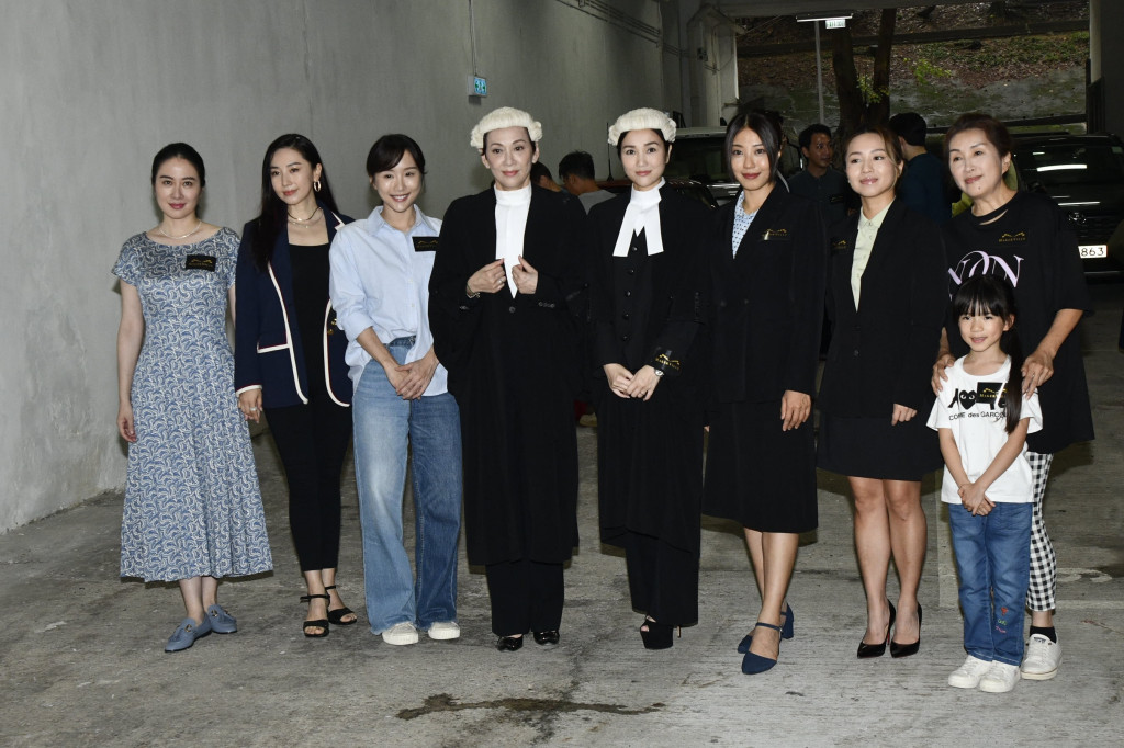 陳靜(左三)配合角色穿上恤衫牛仔褲現(xiàn)身,打扮樸素