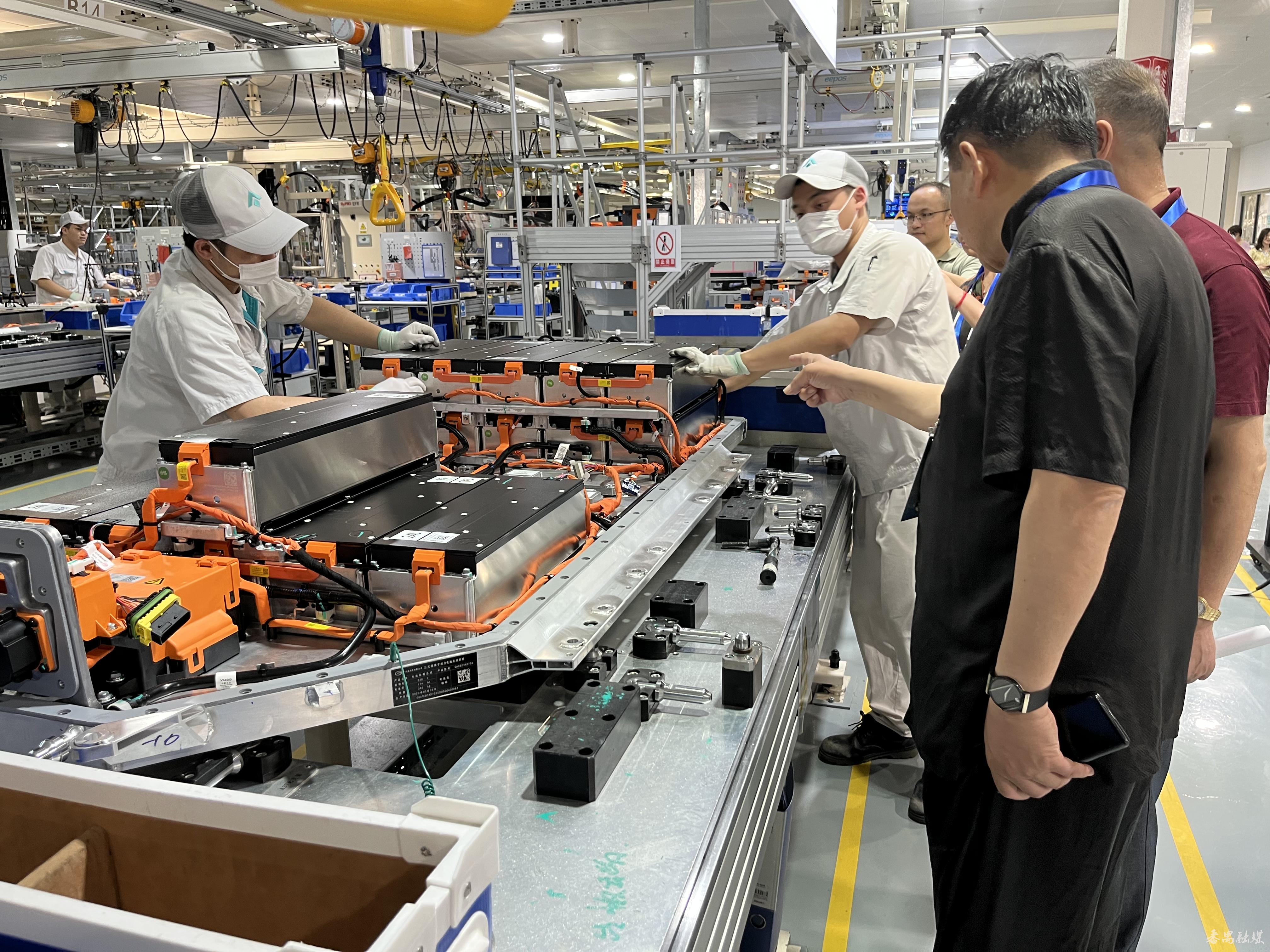 隨后,華媒代表團一行走進總裝車間和電池生產(chǎn)車間,高端智能化的組裝設(shè)備深深吸引了代表團成員駐足觀看并不時拍攝宣傳報道素材,部分代表團成員對總裝車間的設(shè)備和組裝流程等方面向車間負責(zé)人提出了自己的疑問,并一一得到解答。“目前全球車企都在搶抓新能源汽車賽道,看了埃安的生產(chǎn)線,我想這家公司已經(jīng)走在了這條賽道的前列。”華媒代表團成員告訴記者,中國新能源汽車在全球市場的“變道超車”為中國品牌進軍國際市場創(chuàng)造了無限契機。在智能生態(tài)工廠參觀完畢后,華媒代表團針對國內(nèi)新能源汽車發(fā)展以及廣汽埃安未來競爭形勢等方面進行了集體采訪,現(xiàn)場氣氛熱烈。