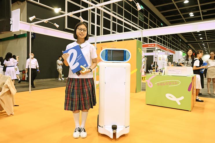 ▲新銳組金獎(jiǎng)得主,就讀圣保祿學(xué)校中四的區(qū)卓蕎表示,她和同學(xué)黃寶瑤設(shè)計(jì)的Miss Pauline 2.0 - 情緒支持機(jī)械人,靈感來自學(xué)校早前擺放的情緒樹,同學(xué)們可透過機(jī)械人以匿名方式發(fā)表心聲,亦可以回復(fù)、鼓勵(lì)其他同學(xué)。