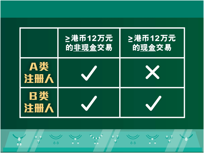 為使香港符合國際打擊洗錢及恐怖分子資金籌集的標(biāo)準(zhǔn),及鞏固香港作為國際金融中心的地位,政府于今年4月1日起引入了新的貴金屬及寶石交易商注冊制度,若任何人有意在香港經(jīng)營貴金屬及寶石業(yè)務(wù),并在業(yè)務(wù)過程中在香港進行總額為12萬或以上港元的交易(不論是支付或收取款項),須注冊為A類注冊人或B類注冊人。