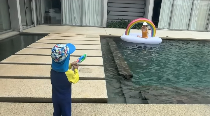 阿Sa與小朋友玩水槍