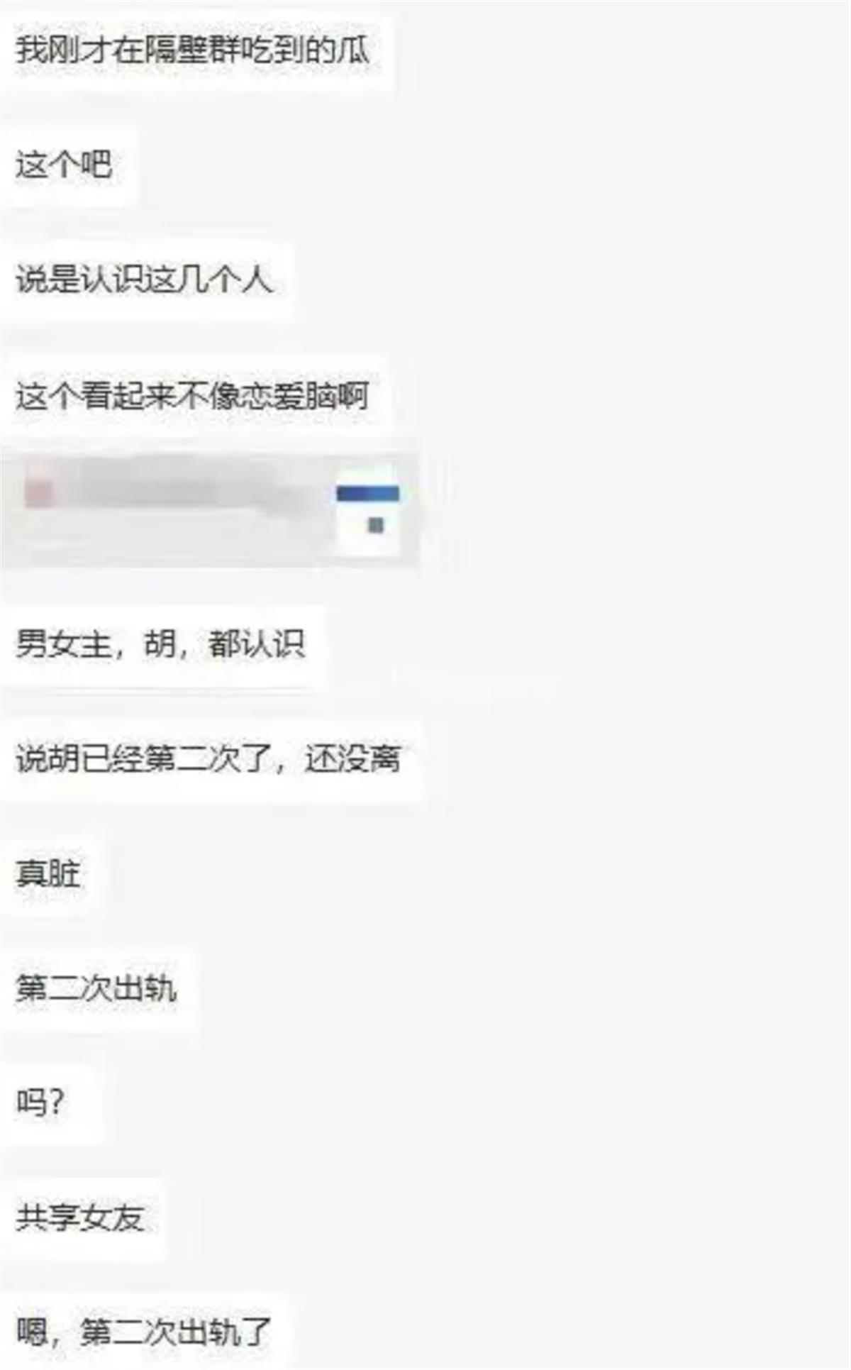 在網(wǎng)傳的梁某與涉事女性電信業(yè)務(wù)經(jīng)理聊天截圖中,梁某曾稱“難怪胡局挨你迷得神魂顛倒”,引起了不少網(wǎng)友的關(guān)注,紛紛在猜測對話中提及的胡姓局長是誰,認(rèn)為相關(guān)部門也應(yīng)該查明“胡局”是否涉及生活作風(fēng)問題。根據(jù)一些網(wǎng)傳圖片顯示,疑似當(dāng)?shù)氐囊恍┚W(wǎng)友證實涉事女性不僅交往梁某,還交往一名“胡局”,“胡局”是第二次出軌,且還沒有離婚。