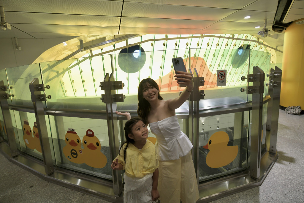 金鐘車站每個角落如月臺、樓梯、扶手電梯、墻壁等位置都滿布小鴨蹤影。