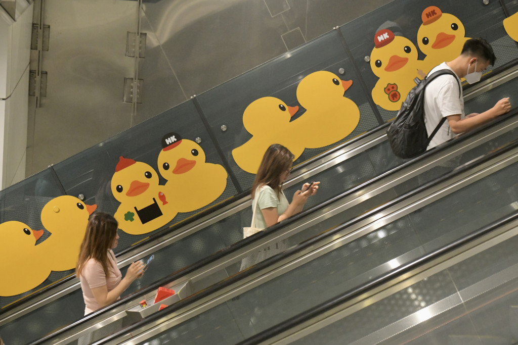 ▲扶手電梯也有小鴨鴨蹤跡。梁譽東攝