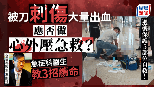 香港鉆石山荷里活廣場昨日(2日)發(fā)生駭人血案,兩名女子被兇手用刀襲擊,身中多刀,最終傷重不治。受刀傷流血時(shí)應(yīng)如何急救處理?急癥科??漆t(yī)生馮顯達(dá)接受《星島頭條》訪問時(shí)表示,如果傷者被刀刺傷出血,未必適合進(jìn)行心外壓,而是應(yīng)該透過3招為傷者急救止血。另外,醫(yī)生又指,如果不幸遇上刀案,可靠2大姿勢增加生存率。