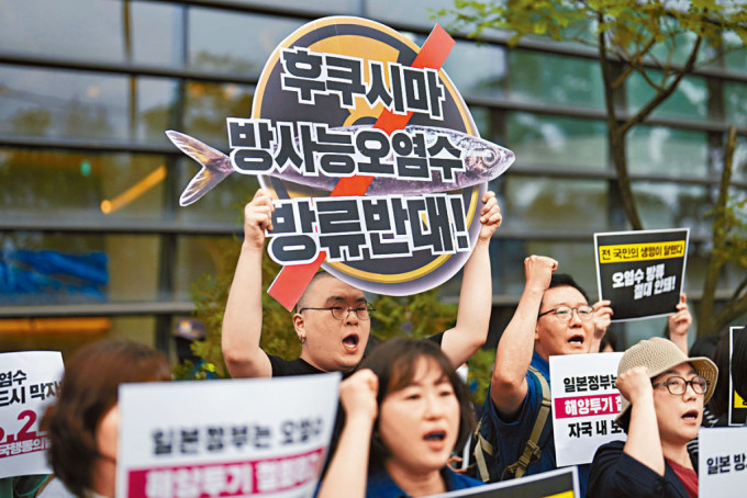 ▲韓國(guó)民間團(tuán)體周四在首爾的日本大使館附近,抗議日政府計(jì)劃排放核廢水。