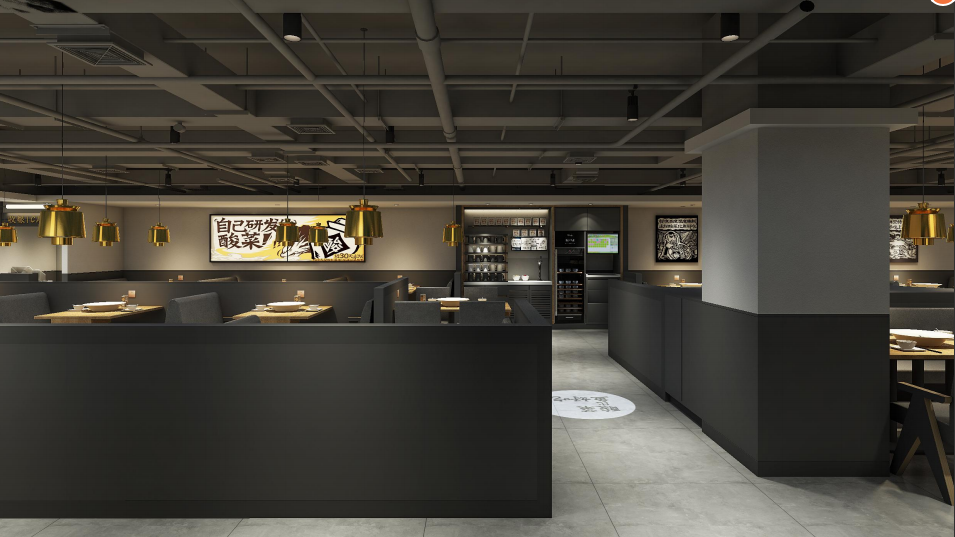 太二酸菜魚香港又一城店,設(shè)計(jì)以簡(jiǎn)約型格為主調(diào),選用黑白灰色調(diào),金色點(diǎn)綴,并融入品牌一貫沿用的版畫元素。 設(shè)計(jì)風(fēng)格不僅符合年輕市場(chǎng)的喜好,更能夠?yàn)轭櫩蛣?chuàng)造一個(gè)現(xiàn)代化的用餐體驗(yàn)。